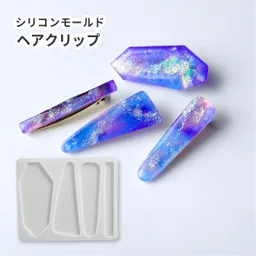 シンプルなデザインのヘアクリップが作れるシリコンモールド。シュッとした形から、周りの目を惹くようなアクセントになる大きさまで4種類のヘアクリップが1枚のシリコンモールドで作れちゃいます♪
