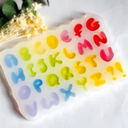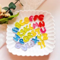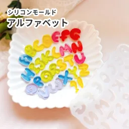 2cm前後のゆるい手書きのようなアルファベットのシリコンモールドです。小さいサイズ感なので、自分や推しのイニシャルをさりげないアクセサリーにしたり、