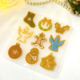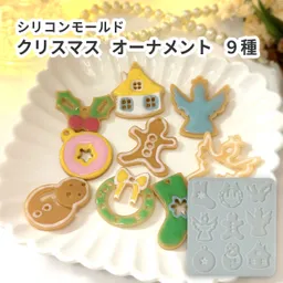 クリスマスシーズンにぴったりなリースや雪だるま、天使などの形が9種類作れるシリコンモールドです。通し穴付きのモールドなので、穴あけ作業が不要です!